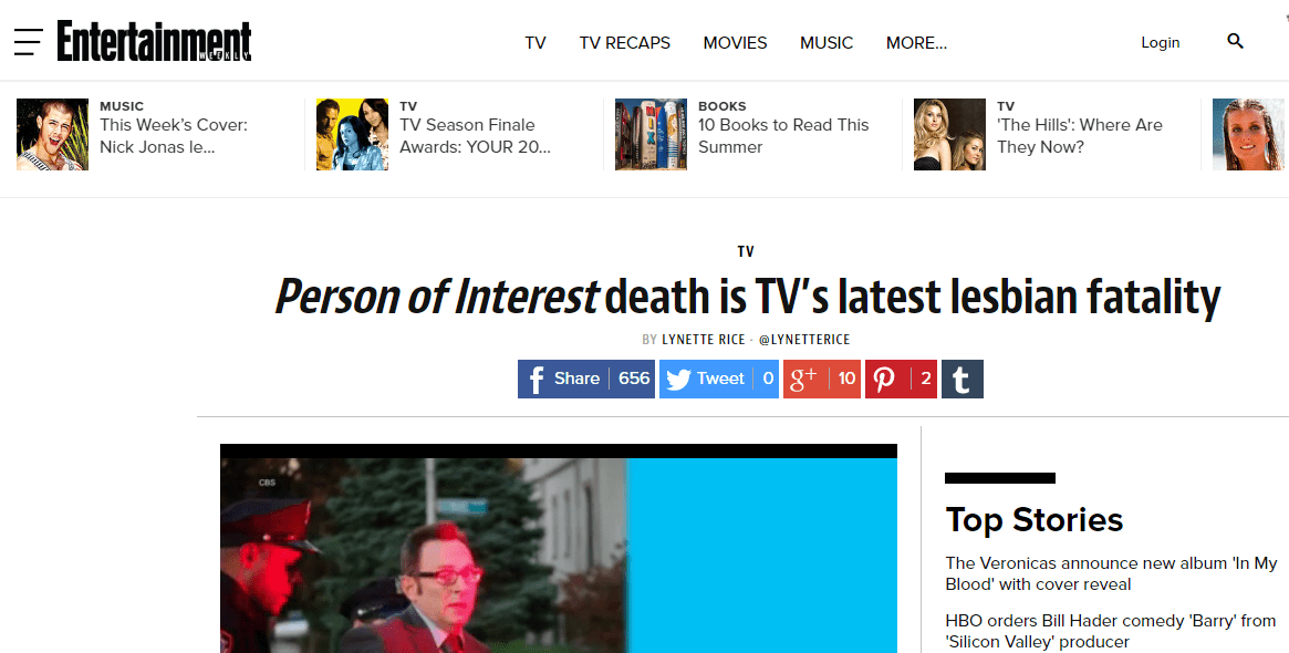 There’s a larger issue underlying the outcry about Root and Person of Interest and its about a larger, dubious trend. Person of Interest has the misfortune of airing in the wake of the fallout over The 100 and its LGBT character death that launched a viral outcry turned movement. A succession of LGBT deaths followed and Person of Interest is the latest one, particularly gut wrenching because the character dies so close to the end of the series. I guess overall I’m suggesting that everyone be open to at the very least understanding why this subset of fans are angry. I love Person of Interest, its the only show I’ve watched live from its pilot all the way through, and I’m not writing it off even with the gut-punch death of Root. But I get why there’s anger and I do think LGBT audiences deserve better.